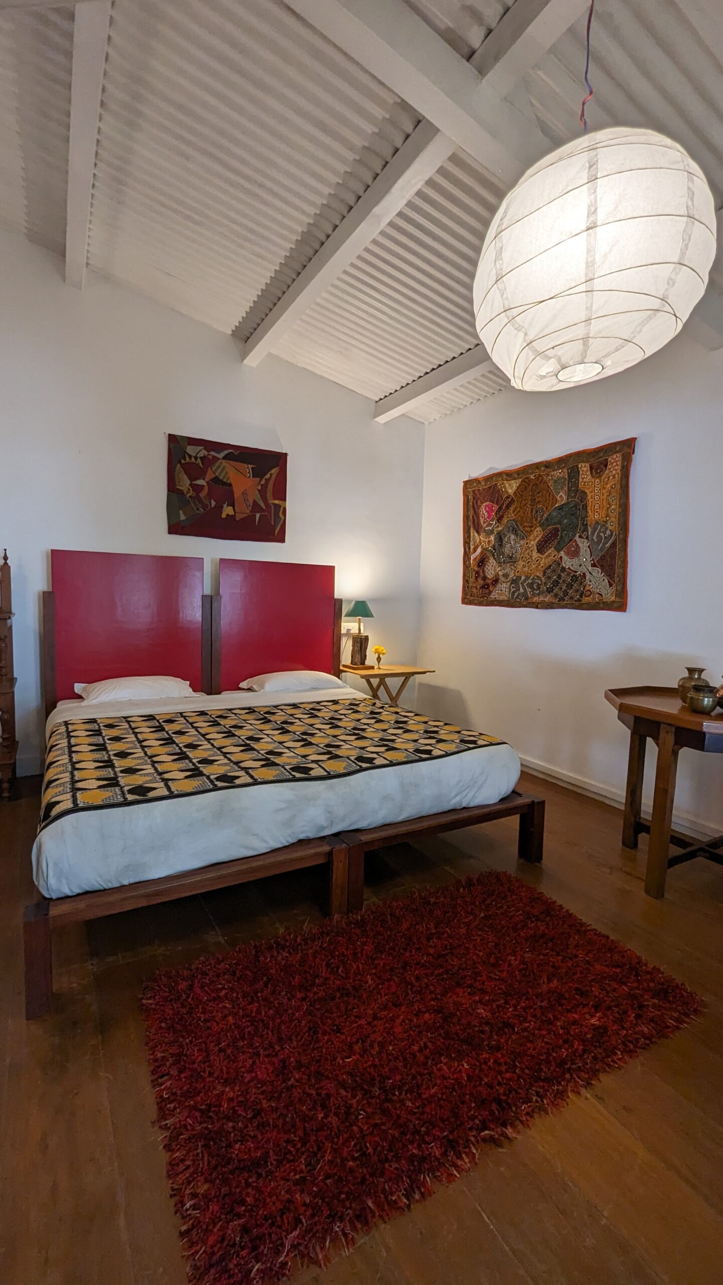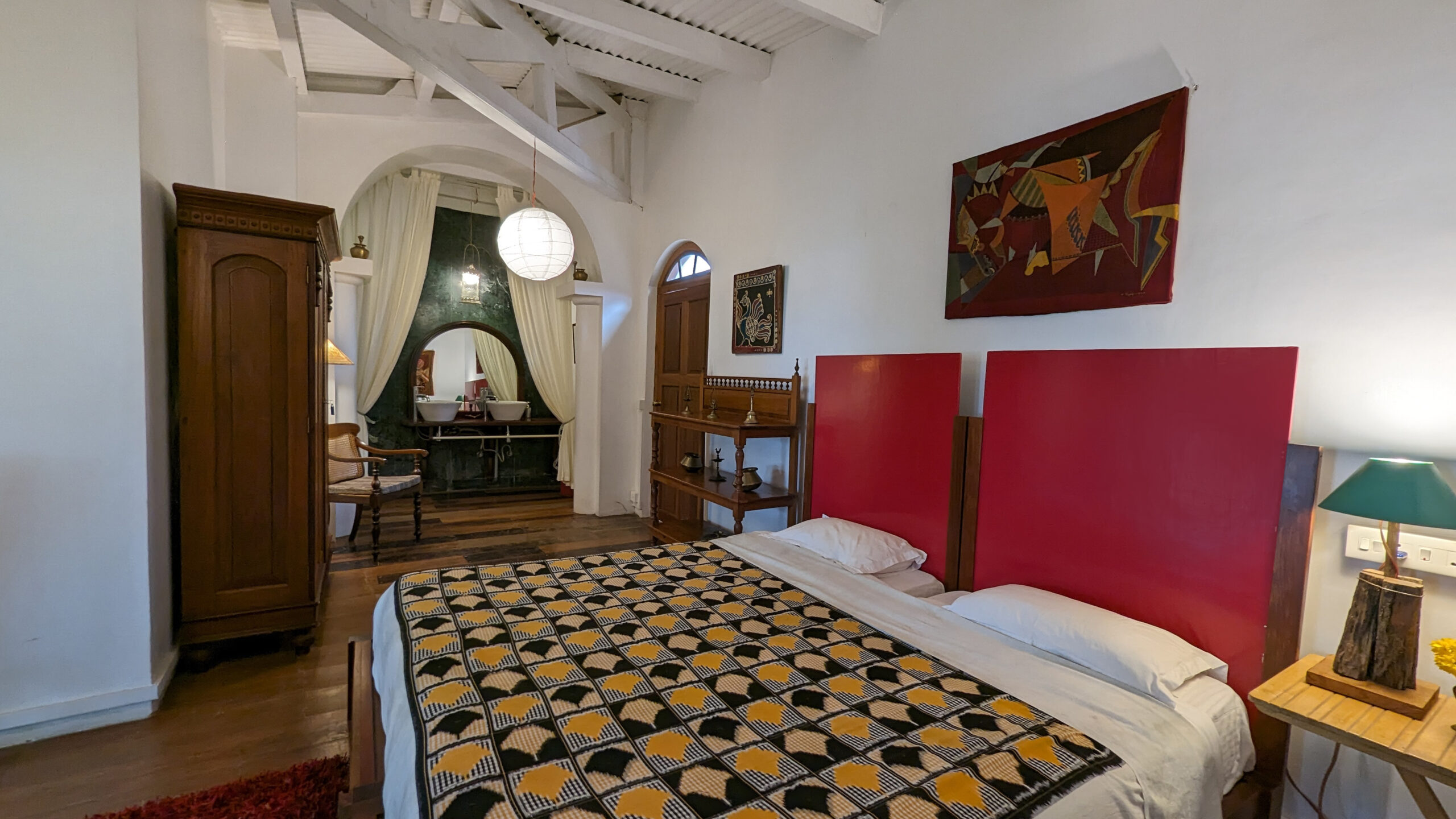 Sunrise Room: Ideal for family stays and wheelchair accessibility, this spacious room features a king-size and single bed. The bathroom boasts a single marble wall shower, and the antique furniture and wood carvings add to the room’s charm.